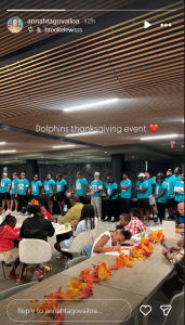 The players signed autographs, were served turkey and were seen giving food bags plus $100 gift cards to families. Annah reshared a photo on Instagram Stories, where Dolphins players can be seen watching over the kids doing various activities under heir “Football UNITES” program.
