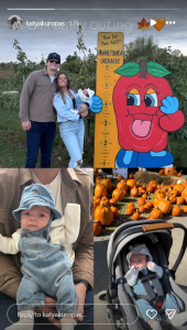 Katya shared a series of heartwarming moments from the day on Instagram. The couple posed beside the orchard’s “How Tall This Fall?” sign, holding baby Rome, who was dressed in a cozy denim outfit and knit sweater.