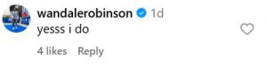 The NFL player didn’t waste any time responding to confirm his girlfriend’s statement in the comments section: