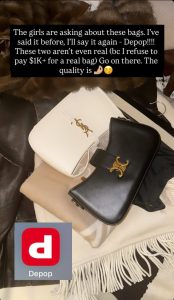 “The girls are asking about these bags. I’ve said it before, I’ll say it again—DEPOP!!! These two aren’t even real (bc I refuse to pay $1K+ for a real bag) Go on there. The quality is 👌”, Kristen wrote.