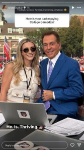 On Tuesday, Nick Saban’s daughter, Kristen Saban, was asked a question in a comment on Instagram. She was asked how her dad is enjoying working on College GameDay. She responded with a three-word comment on her Instagram story, making it clear how much Nick Saban is enjoying his post-retirement career.