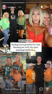 Miami Hurricanes quarterback Carson Beck’s sister Kylie shared her gratitude towards her family in her latest appreciation post on Instagram. Kylie and Carson were born to Chris Beck and mother Tracy Beck. Chris and Tracy are now divorced.