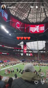 Following her outfit video, Alexis gave an aesthetic view of the Mercedes-Benz Stadium in Atlanta, Georgia. The video captured the field, filled with players, and the huge Alabama banner with the words “CRIMSON TIDE” displayed across the digital screen.