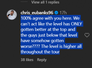 “100% agree with you here. We can’t act like the level has ONLY gotten better at the top and the guys just below that level have somehow gotten worse???? The level is higher all throughout the tour.”