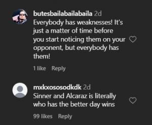“Sinner and Alcaraz is literally who has the better day wins,” one fan commented.