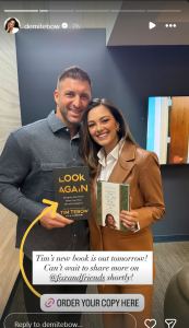 Ahead of the book launch, Tebow’s wife Demi-Leigh teased an upcoming event and also their appearance on the “Fox and Friends” morning show. She wore a brown suit while Tebow donned a grey outfit as the couple seemed excited for the book launch.