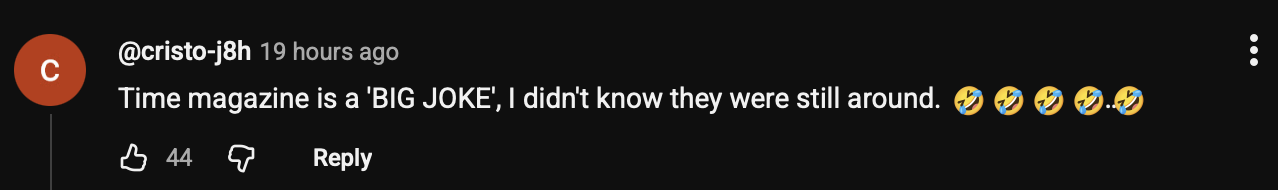 “Time magazine is a ‘BIG JOKE’, I didn’t know they were still around,” another replied.