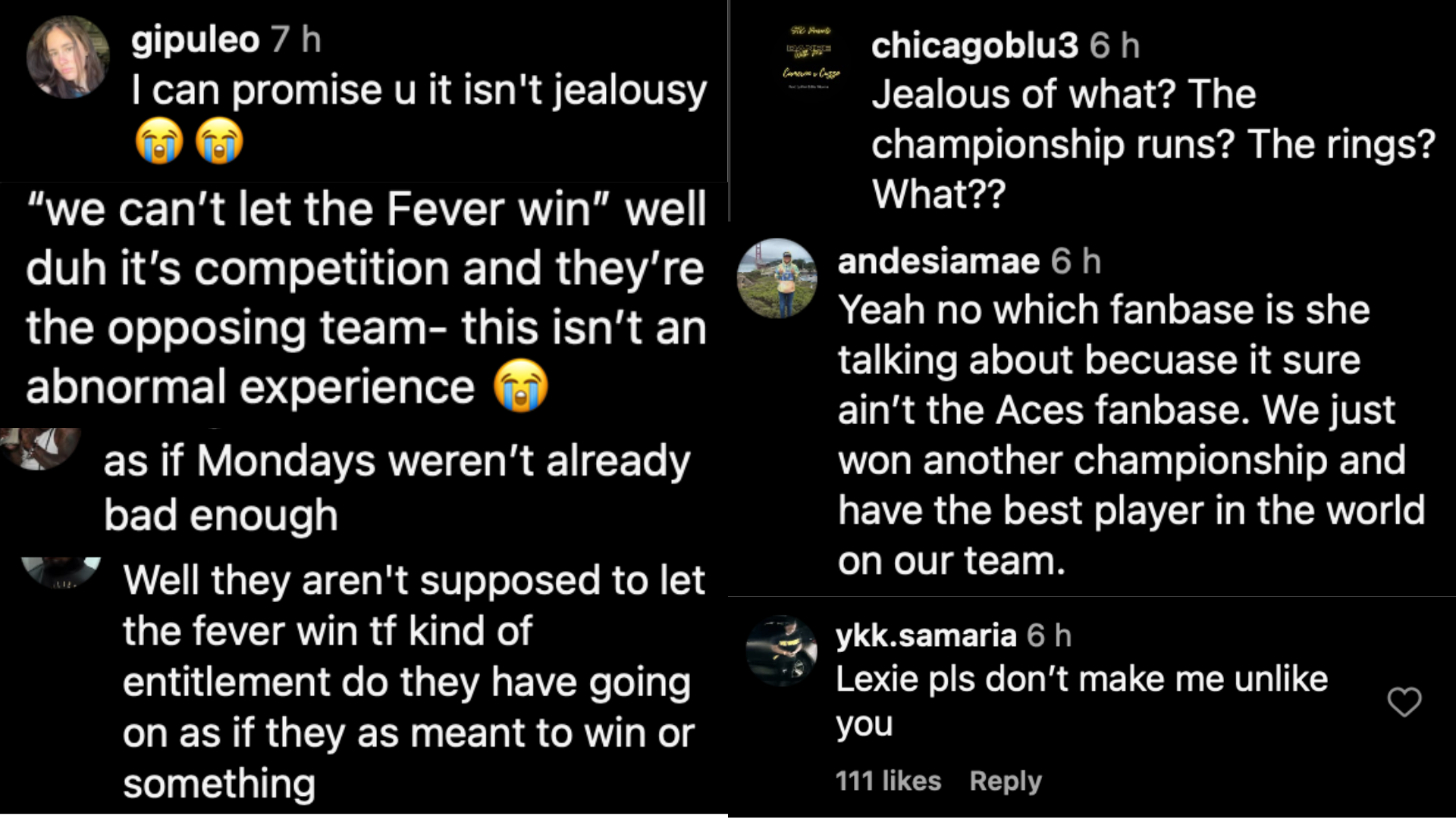 “‘we can’t let the Fever win,’ well duh it’s competition and they’re the opposing team- this isn’t an abnormal experience,” another fan said.