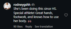 “She’s been doing this since HS. Special athlete! Great hands, footwork, and knows how to use her body🙌🏾,” said one fan.