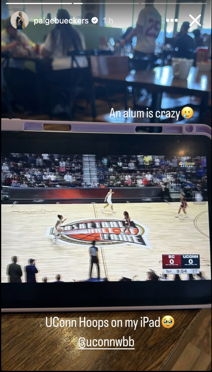 Paige Bueckers expressed how she was reminiscent of her time with the Huskies and couldn’t believe it was over. She shared a snap on her Instagram as she watched UConn’s game on her iPad.